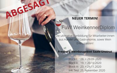 Endlich steht der neue Termin für das FuW WeinkennerDiplom mit IHK Zertifizierung in Freyburg fest! Die ultimative Fortbildung für Mitarbeiter:innen aus Handel und Gastronomie sowie Wein-Enthusiasten.